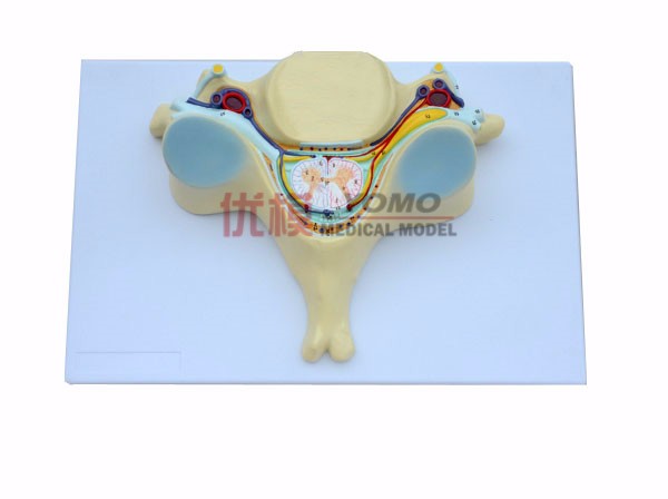 該模型顯示第五頸椎、椎動脈、椎靜脈與脊髓的橫切面以及脊神經(jīng)組成、硬脊膜、蛛網(wǎng)膜下隙等結(jié)構(gòu)。