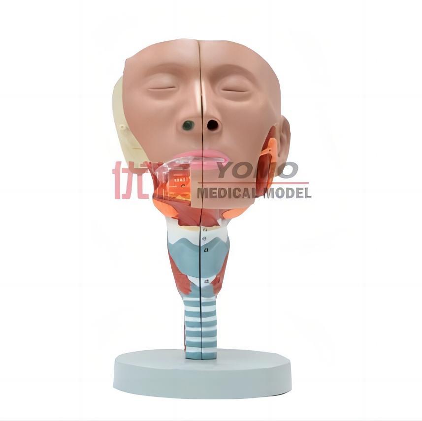 此款模型為自然大頭示咽肌模型,2部件,出示了眼部和下頜部位的肌肉及部分腺體。