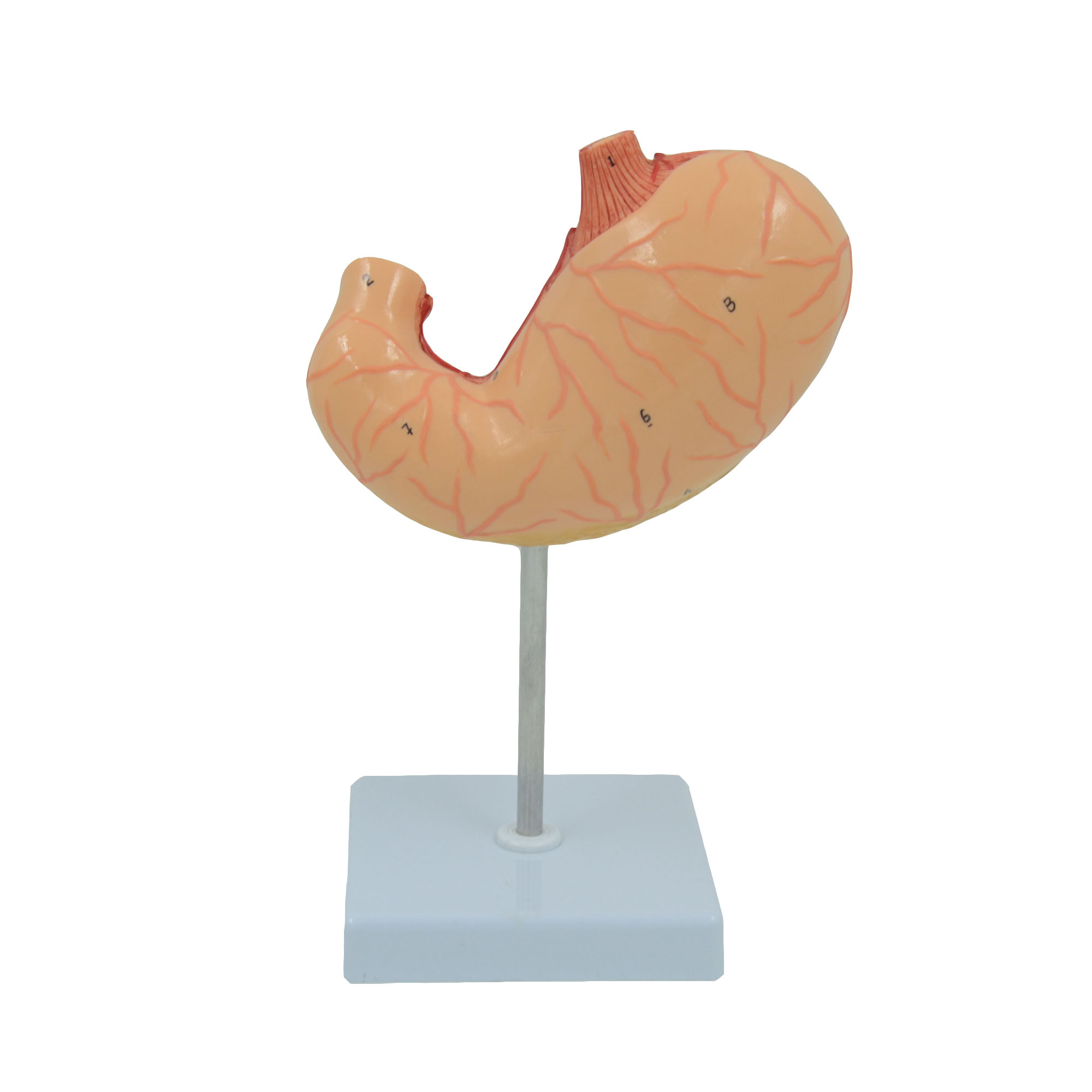 此款1比1大小的正常胃模型,2個部件,清晰展示胃的內(nèi)外部構(gòu)造,模型上有多處數(shù)字標(biāo)識,方便教學(xué)使用。
