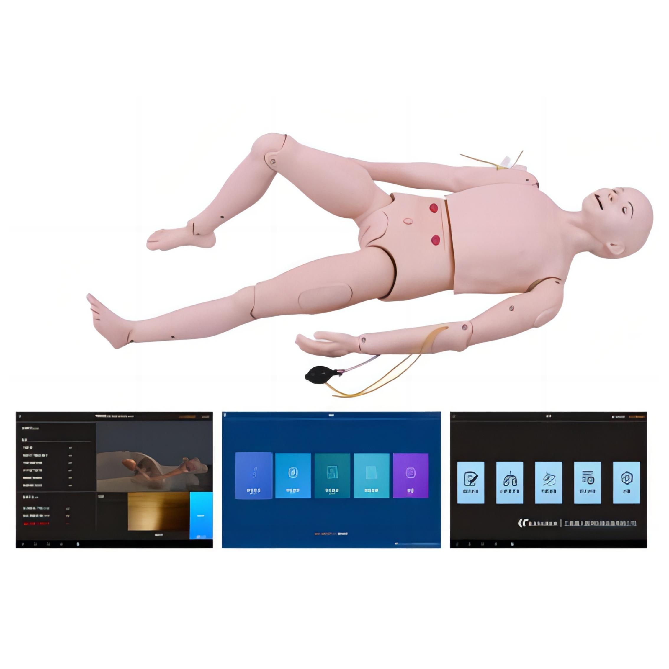 模擬人可取仰臥屈膝位,兩腿外展后可獨(dú)立支撐,左右上臂、小腿可靈活旋轉(zhuǎn)本模型是集護(hù)理與急救于一體的整體護(hù)理人,身高170cm,雙眼可眨動,關(guān)節(jié)靈活,可實(shí)現(xiàn)多種體位,滿足操作需要解剖標(biāo)志明顯,可觸及兩乳頭、肋骨、胸骨及劍突,胸部富有彈性,外皮可打開,能觀察到真實(shí)大小的肋骨、雙肺、心臟、肝臟、胃(透明),頸動脈搏動,等器官
