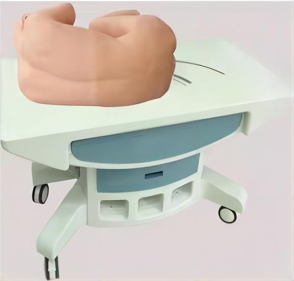 腰椎穿刺仿真標準化病人用于醫(yī)學院校、醫(yī)院對醫(yī)學生及醫(yī)務人員進行腰椎穿刺模擬訓練及技能考核。仿真標準化病人取側臥位,背部與床面垂直,頭向前胸彎曲,雙膝向腹部屈曲,軀干呈弓狀。