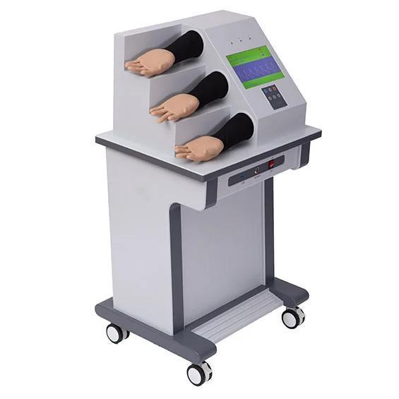 采用三只手組合模式,區(qū)別于一只手形式對(duì)浮中沉、血管粗細(xì)、血液粘度無法明確區(qū)別的嚴(yán)重缺陷。配備10.5寸液晶顯示多媒體操作界面,顯示內(nèi)容包括:聯(lián)機(jī)模塊,練習(xí)模塊選擇。聯(lián)機(jī)模式下學(xué)生機(jī)可受到教師機(jī)端控制,控制有效距離為200米,方便大范圍下教學(xué)使用。1號(hào)手以血管粗大、脈搏洪大、脈位偏浮為主;2號(hào)手以脈道粗細(xì)適中、脈位中等類脈象為主;3號(hào)手以血管纖細(xì)、脈位較沉類脈象為主。