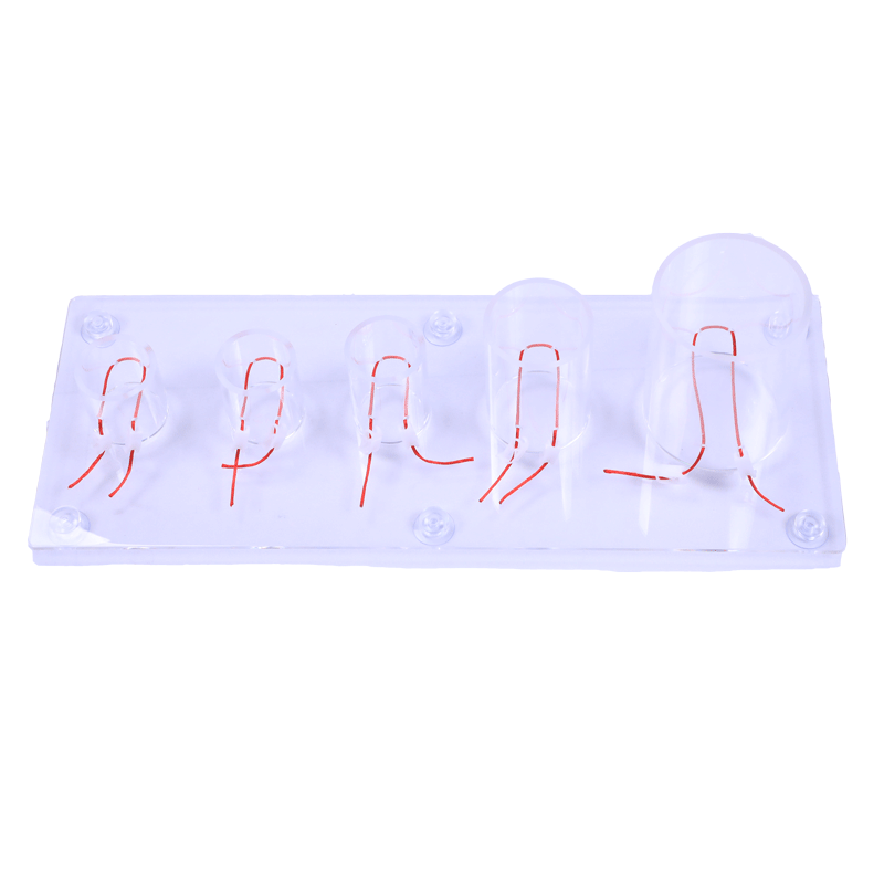 ■ 由透明材質(zhì)制成,五種不同大小的圓柱體構(gòu)成不同的打結(jié)空間。
