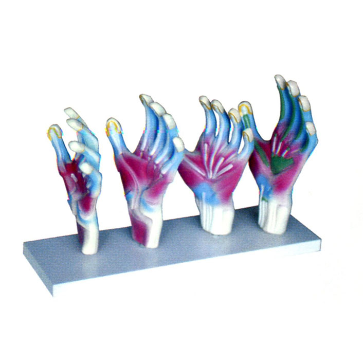 博友BM1301手肌解剖模型一套4件,顯示了手掌由淺入深的解剖層次。
