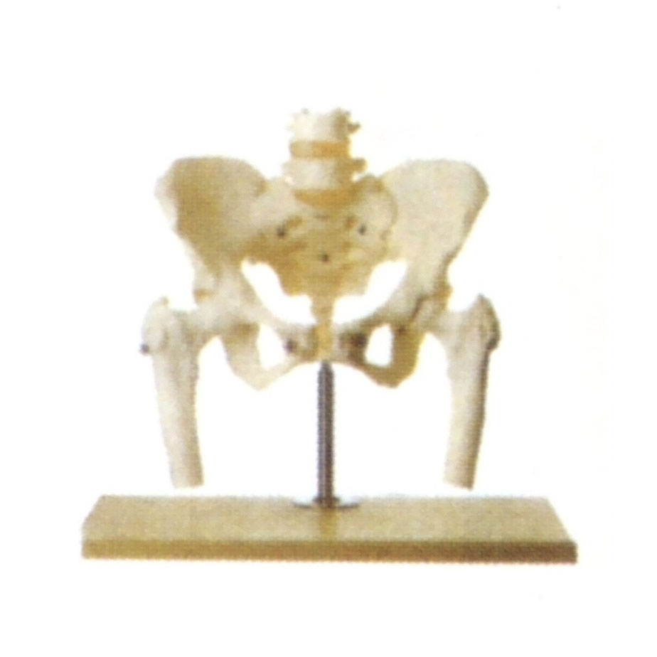 博友BM1039骨盆附腰椎與股骨頭模型用金屬線串接,固定在基板上。