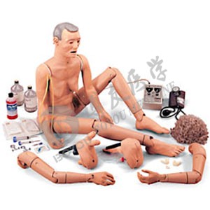 The Advanced Geri™ Manikin is fully functional with the addition of a right IV Training Arm (LF03214U) and a left Blood Pressure Training Arm (LF03204U). The Life/form® IV Arm features replaceable skins and latex veins that actually roll when palpated. A realistic flashback confirms proper needle placement, and the shoulder can be used for intramuscular injection training. The Life/form® Blood Pressure Arm reproduces the five Korotkoff sounds and allows the instructor to vary systolic and diastolic levels, pulse rate, volume, and auscultatory gap. One-year warranty.