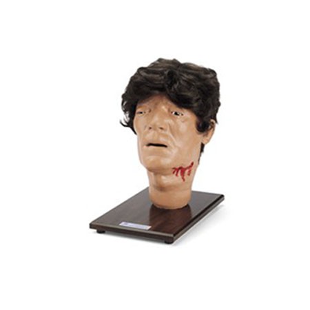 創(chuàng)傷頭部模型根據一名遇到交通意外的傷者塑造, 顯示不同的創(chuàng)傷情況,這個模型裝在底板上,但容易接到成人模型使用。
